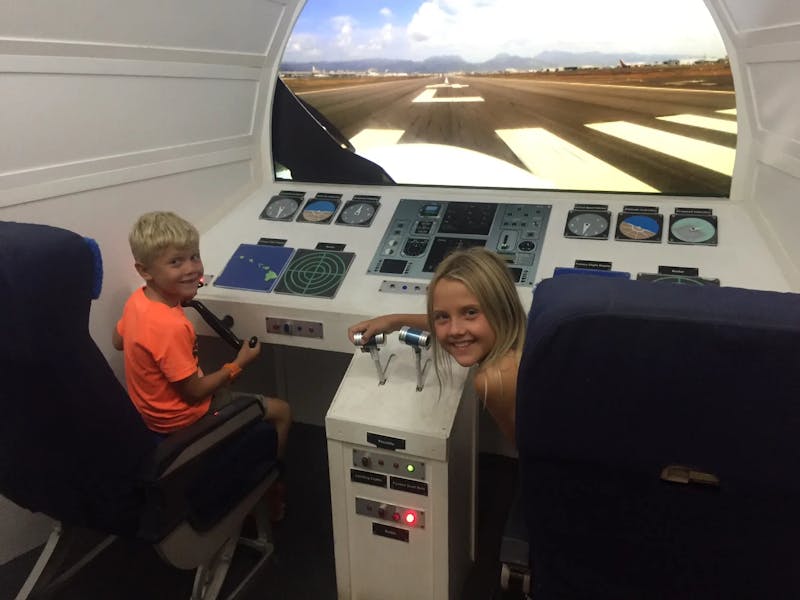 2. It’s also all about being interactive: I’m not sure if it’s just this generation of children, but I’ve learned my kids are all about interaction. No boring plaques for them! It’s all about touching, feeling, exploring. The Discovery Center is custom-made for children who like to use their hands to learn. For example, one of my kids’ favorite exhibits is a Hawaiian Airlines “plane.” Inside, you’ll find real airplane seats, a beverage/meal cart, and a cockpit where children can simulate landing and taking-off.