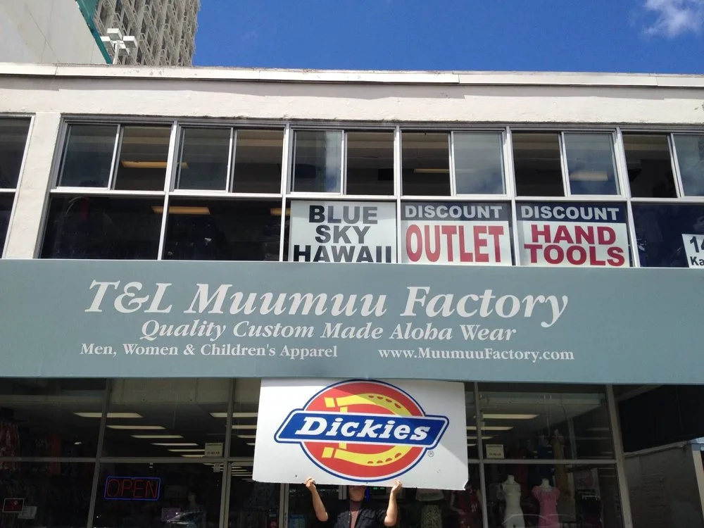 1. T and L Muumuu Factory: This Hawaiian clothing manufacturer on Kapiolani Boulevard in Honolulu was established in 1987, and they specialize in making traditional and modern style muumuus. Customers select a fabric and style and the muumuus are made to order. Long muumuus, short muumuus, blouses, skirts, and men’s and children’s aloha wear are all available.