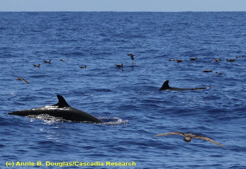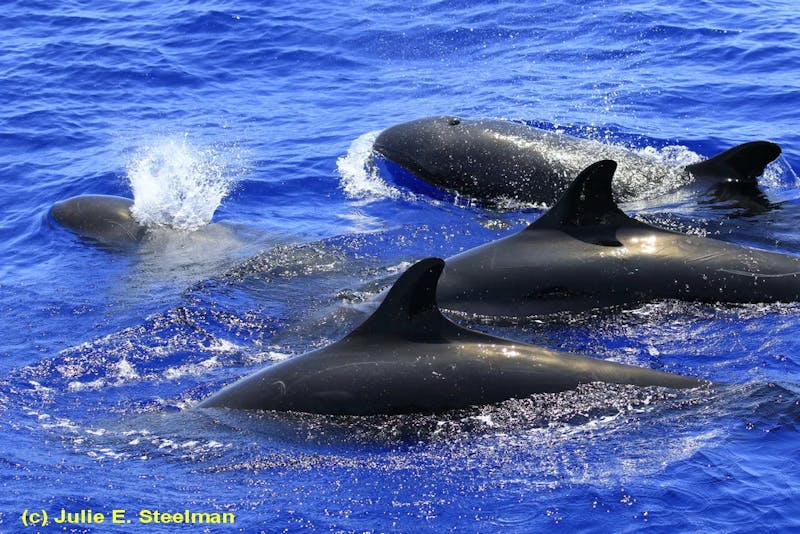 According to the researchers, each adult is distinctive, so they compare notches, nicks, and other markings on dorsal fins to identify individuals. In fact, according to Cascadia, of the 20 whales photographed by the group, researchers have identified 15 individuals, including one that was first documented in 1986 and was only the 15th false killer whale identified in Hawaii waters. In total, the group saw about 50 individual animals spread over five or six miles.
