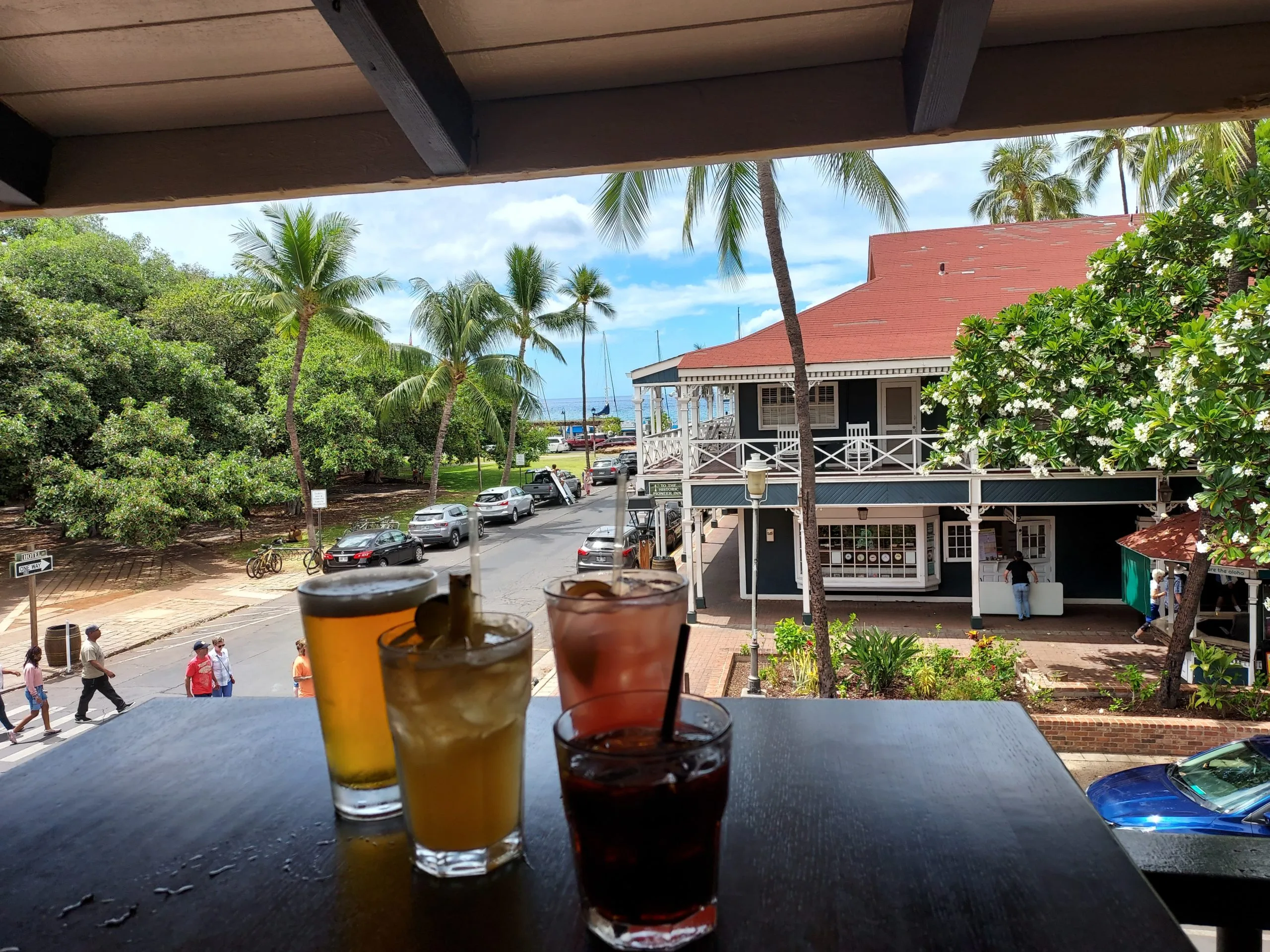 Picking up the rental vehicle was a breeze, as was finding and checking into our accommodations located between Kaanapali and Kapalua. We had arrived at supper time. Rather than stopping for a bite, we made a run to the Times Supermarket in Kaanapali to stock up on snacks, adult beverages, and reef-safe sunscreen. We enjoyed cocktails on the oceanfront lanai and decided to head into Lahaina for lunch the next day.