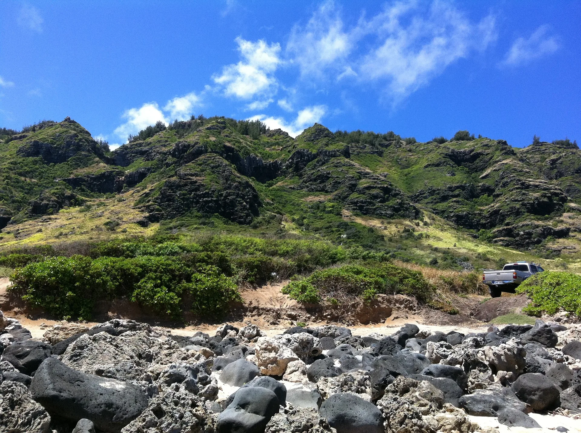 The trail is 3.5 miles to the peak with an elevation change of 3500 feet. There are rope sections and severe inclines that should only be attempted by fit, experienced hikers who are properly equipped and supplied with ample drinking water. It includes several rope-climb sections. It’s an all-day affair, and you’ll need to set out early to fully enjoy the trail before nightfall. Lost hikers requiring rescue resources are not uncommon on the Mount Ka’ala Hiking Trail.