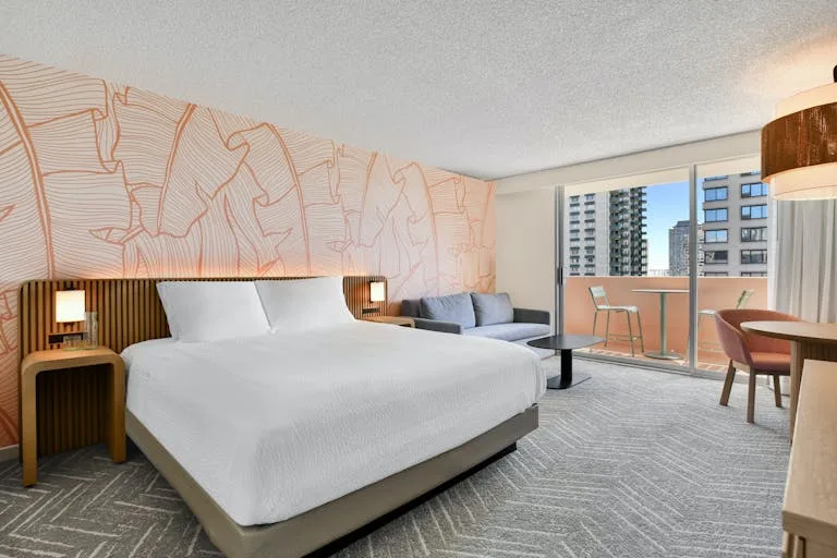Formerly known as the Ambassador Hotel Waikiki, this completely renovated space boasts 368 elegantly casual rooms, with every corner having a story. There are spaces for every kind of traveler – from solo globetrotters to families. Picture yourself stepping onto a private lanai, lounging in cozy corners, and basking in details that stand out. Like the all-gender uniforms, intricately designed by the renowned Hawaiian designer, Matt Bruening. And let’s not forget the mesmerizing view – the shimmering coastlines of Waikiki.