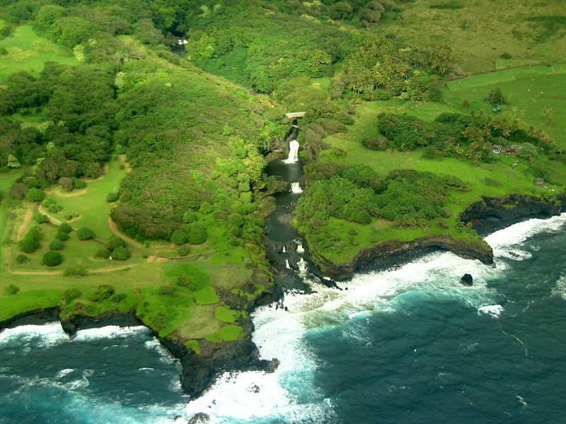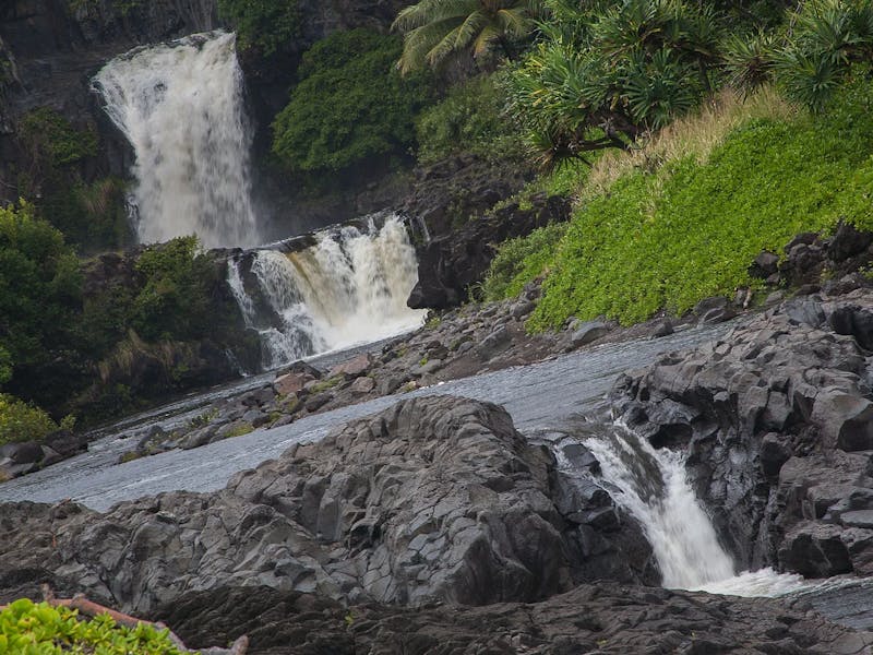 The Pools of Oheo (sometimes called the Seven Sacred Pools), are a series of tiered, swimmable pools located in Oheo Gulch. The gulch is located in the Kipahulu area of Haleakala National Park. According to MauiGuidebook.com, Oheo Gulch is an idyllic valley cut deeply over countless millennia by an equally idyllic rainforest stream. The stream is punctuated regularly along its course by cascading waterfalls and plunge pools until it empties into the deep-blue Hawaiian ocean along the rugged Kipahulu coastline.