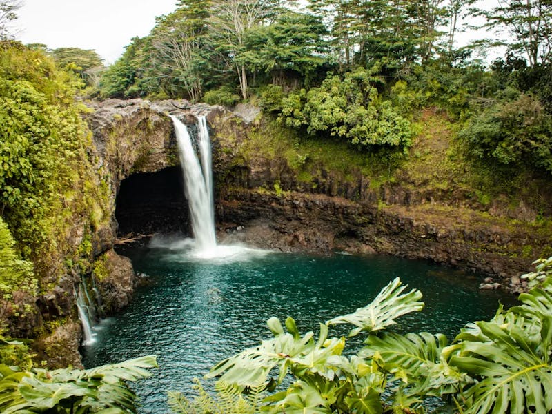 Located just minutes from downtown, Rainbow Falls is one of the most famous Hilo waterfalls. The 80-foot cascade tumbles into a turquoise pool below, and if you visit in the morning, you may see a rainbow in the mist—hence the name.