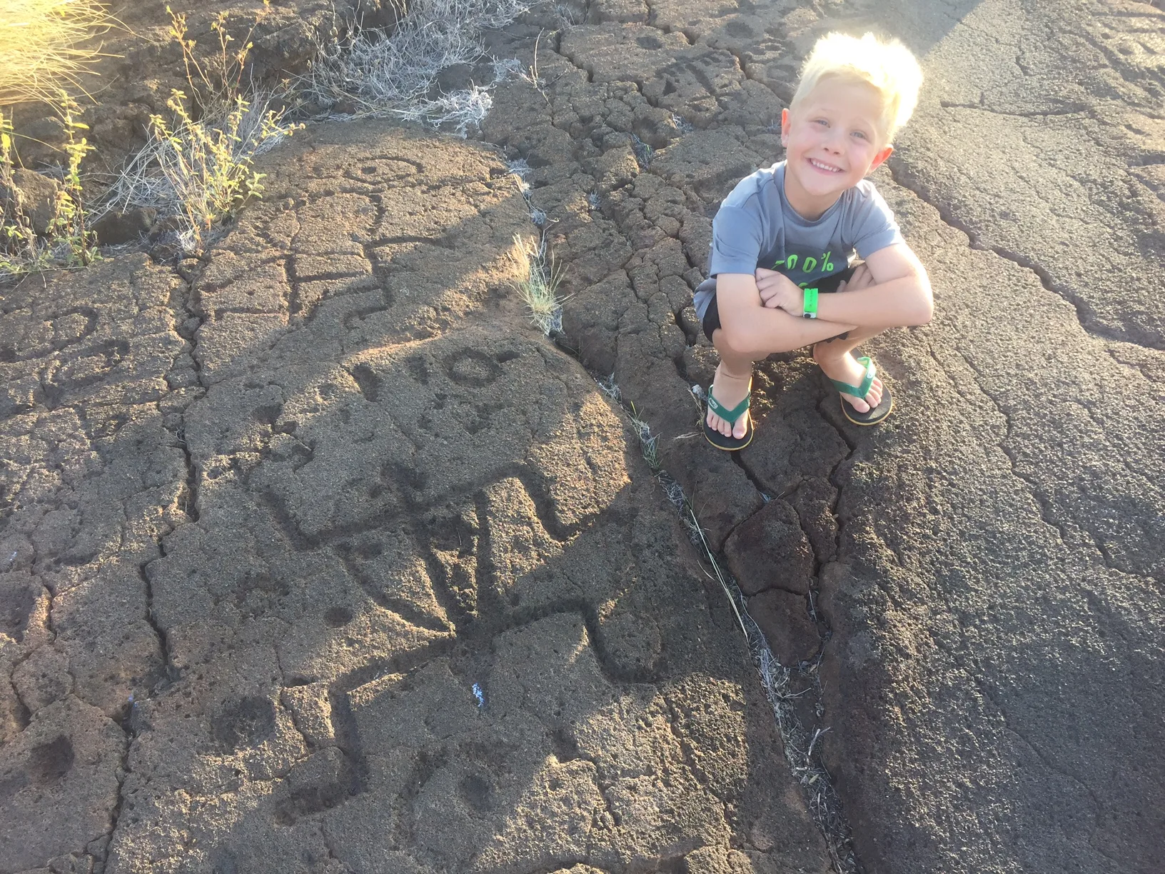 I heard this request at least eleven times during our recent stay at the Waikoloa Resort on the Big Island, and all of them came from my six-year-old son. Either I was witnessing the beginnings of my young son’s career in archaeology — or (more likely) the petroglyph field we explored was just plain amazing!