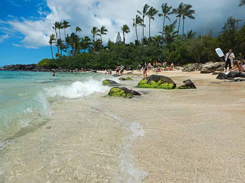 The turtles come to Laniakea Beach to bask in the sun. Many times, you can see them swimming near where the waves break onto the beach: